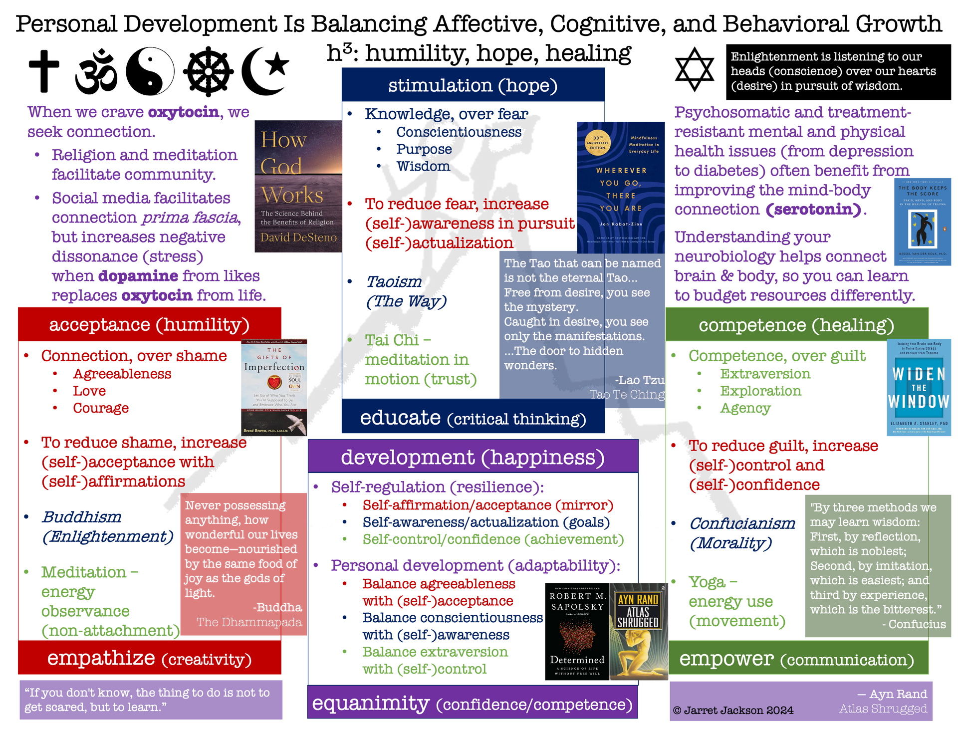 Pairing my neurodivergence with my understanding of neurobiology, I created a holistic framework for self-improvement that balances insights from psychology and philosophy, science and spirituality, and free will (objectivism) and faith (determinism). Learning to care for my body, my brain, and my heart helped me transform.