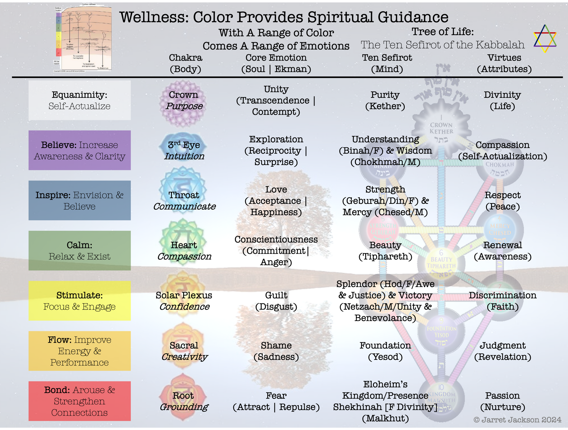 Eastern spiritual leaders and western theologians have noticed relationships between color, light, and wellness for a few millennia. Neurobiologically, we can influence our brain waves and body chemistry to improve our mental and physical health. It's not just diet, exercise, and rest; it's learning your brain and body and how to meet your unique needs.