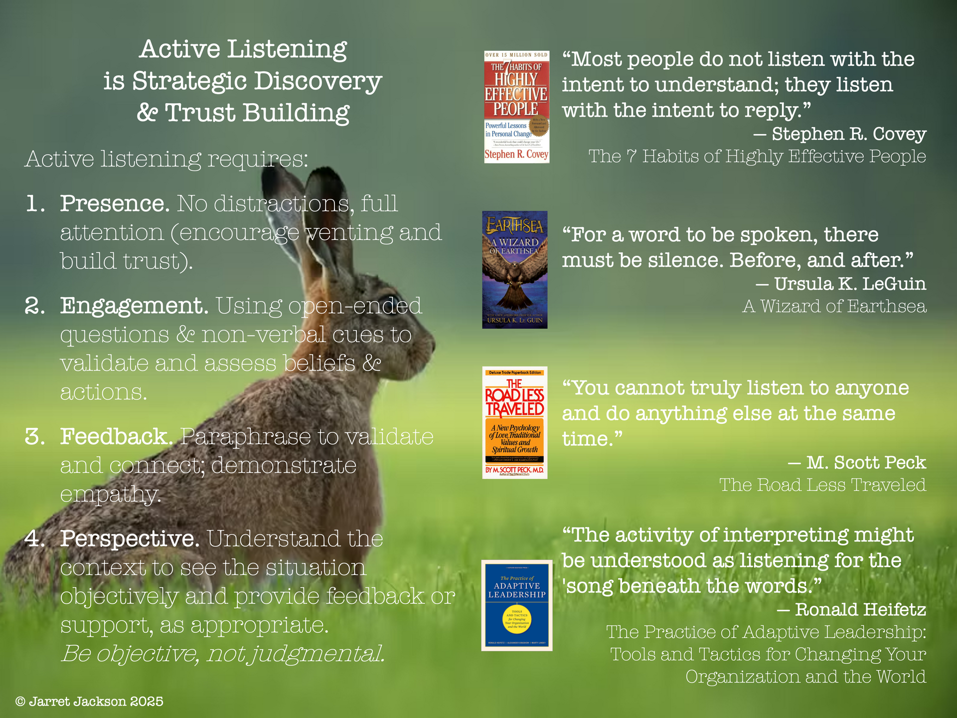 My high school Peers As Leaders class taught me how empathy and active listening could be used as the foundation for peer counseling and mediation. In my MBA program, former FBI hostage negotiator and best-selling author Chris Voss taught me how the same skills could be used in hostage (and business) negotiations. For both your personal and professional lives, developing these "soft" skills can radically transform how you communicate and how you are heard.